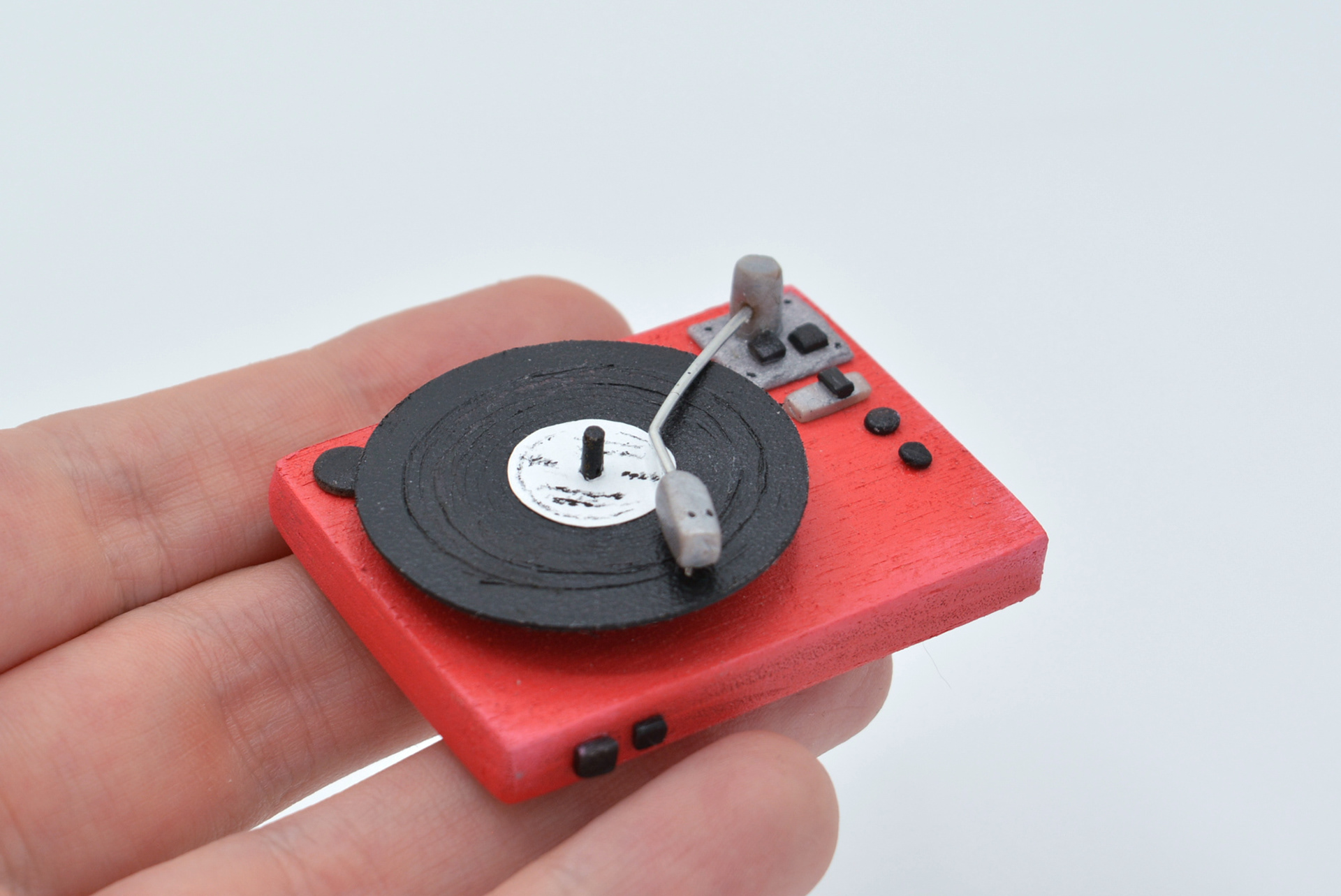 I made the record player, decorated mini presents, and compiled, painted and weathered found objects into miniature spaceship engines.